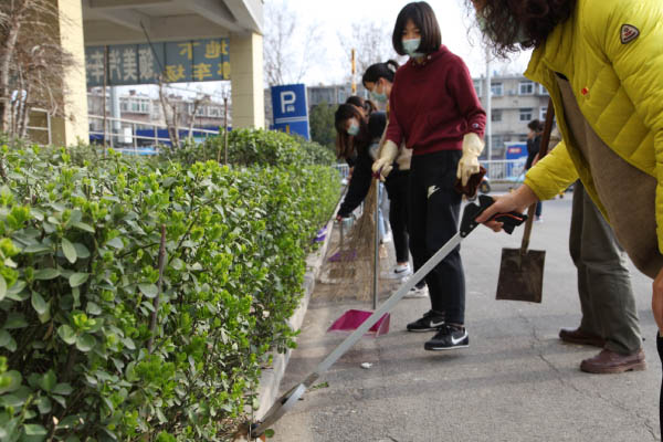 2021年3月5日一大早,在机关党支部书记耿春昌的带领下,润易集团广大党员干部职工拿着扫帚、夹子、铲子、垃圾箱等劳动工具,来到了单位周边的马路上开展环境美化、道路清扫,将集团办公楼周边区域停车场、马路、草坪及花坛中烟头、废纸、杂草、杂物、枯树等垃圾进行清扫,在清洁办公楼周边卫生美化区域环境的同时为提升城市环境质量做出了贡献,受到了路过市民的好评。